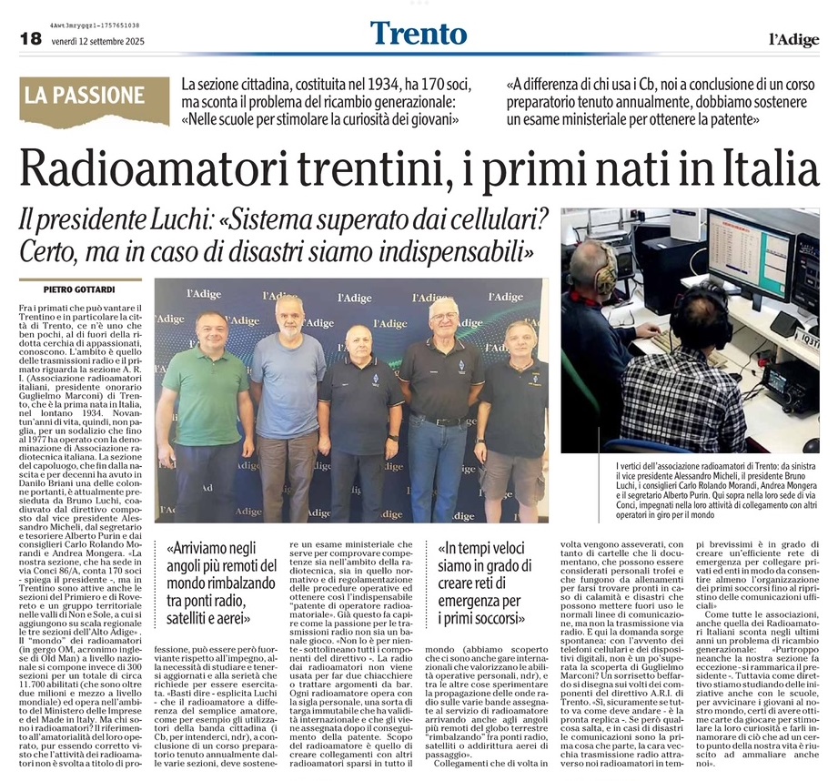 Sul giornale l'Adige del 12 settembre 2025, un bell' articolo che parla della nostra Sezione.